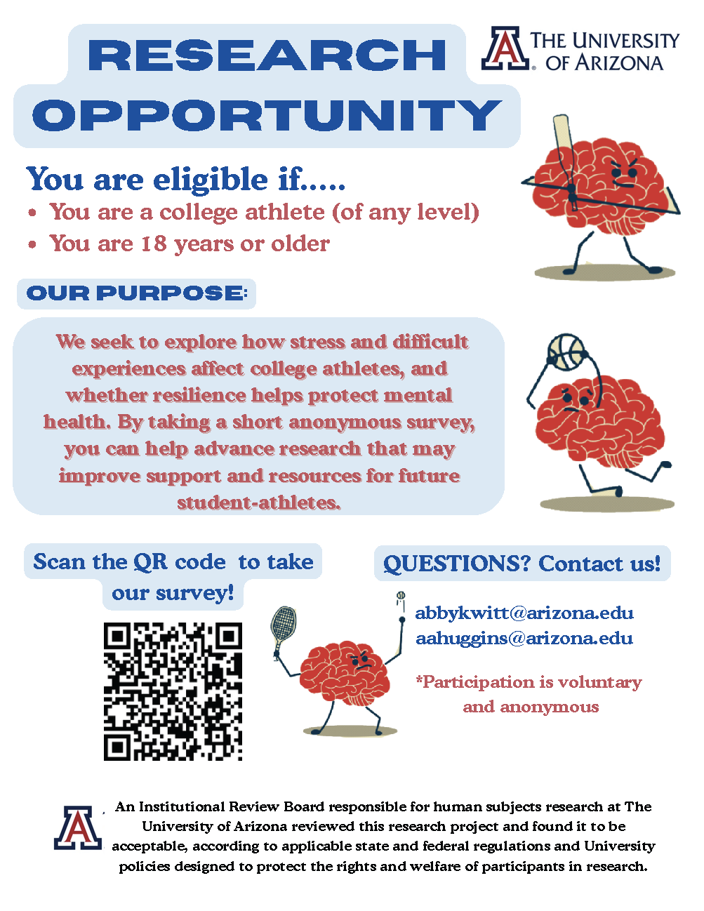 If you have any questions at all, please do not hesitate to email us at abbykwitt@arizona.edu or aahuggins@arizona.edu